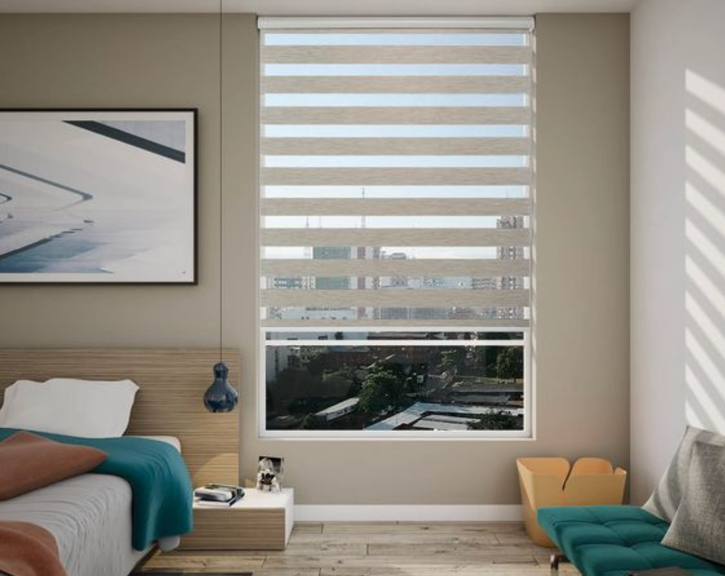 El acomodo de estos dos tejidos permite un mayor control de la luz y privacidad.